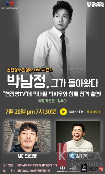 [코리아뉴스타임즈] = 가수 박남정이 최근 새 앨범을 발표하고 인터넷 모바일 방송인 ‘현진영go진영go라이브 시즌2’에 초대 게스트로 출연한다.